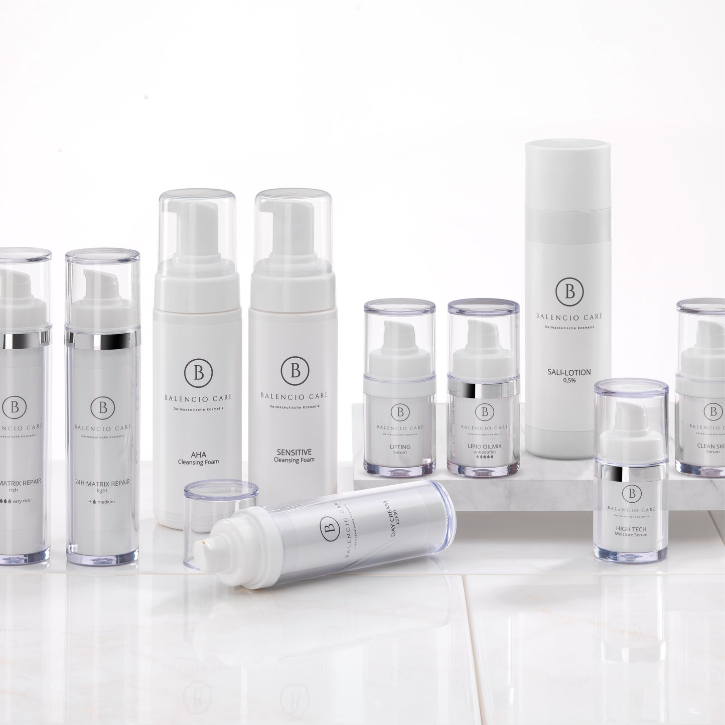 Die Balencio Care® Gesichtspflege ist genau darauf abgestimmt – mikrobiomfreundlich, barrierestärkend und tiefenwirksam. Eine milde Reinigung, gefolgt von Seren und lamellaren Cremes versorgt die Haut optimal mit Feuchtigkeit und Lipiden.